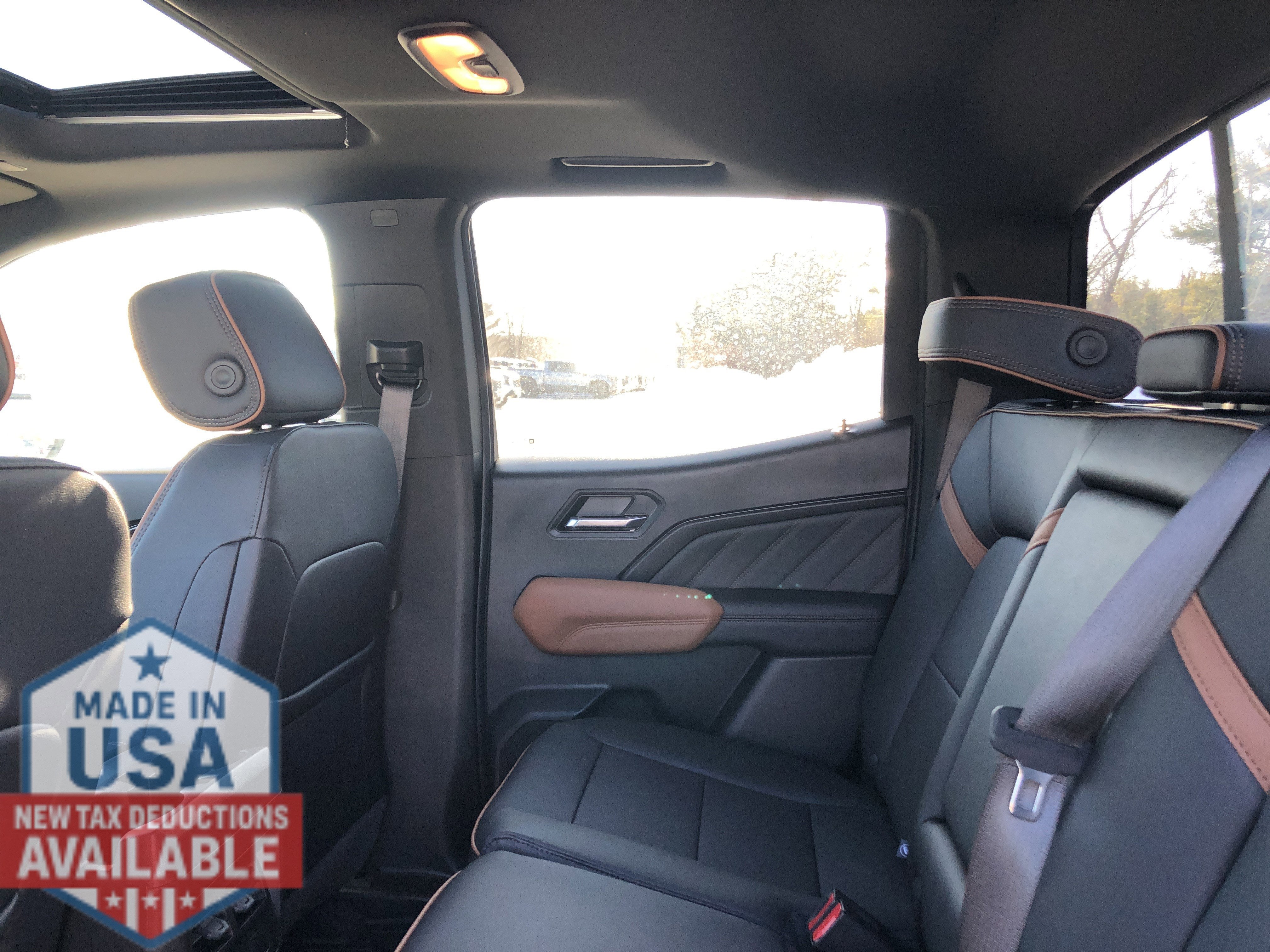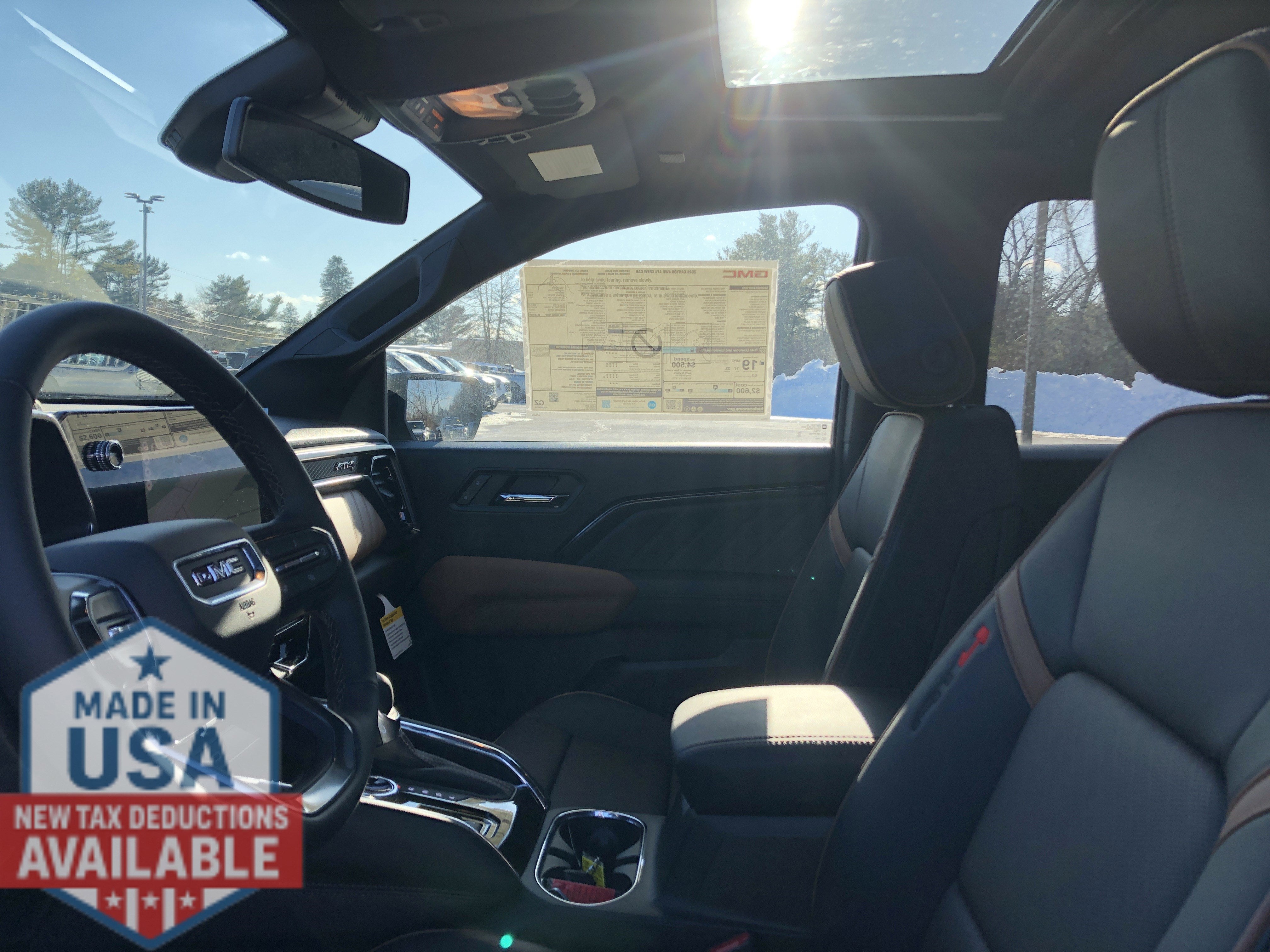 AT4 PREMIUM PACKAGE includes (HX6) Jet Black/Timber perforated leather-appointed front seating surfaces, (A45) Driver memory recall, (A7J) 6-way front passenger seat, (AT9) Power Lumbar front passenger seat, (DA5) Rear Seat Center Arm Rest, (E90) Driver seat back pocket, (K7A) Wireless charging, (KI3) heated steering wheel and (KU9) Ventilated driver and front passenger seats , ENGINE, TURBOMAX (310 hp [231 kW] @ 5600 rpm, 430 lb-ft of torque [583 Nm] @ 3000 rpm) (STD), BEDLINER, SPRAY-ON WITH GMC LOGO, Wireless Apple CarPlay/Wireless Android Auto, Windows, remote Express-Down, all windows, Windows, power with driver Express-Up and Down, Windows, power rear, express down, Window, rear-sliding, manual, Window, power with front passenger Express-Down, Wi-Fi Hotspot capable (Terms and limitations apply. See onstar.com or dealer for details.).