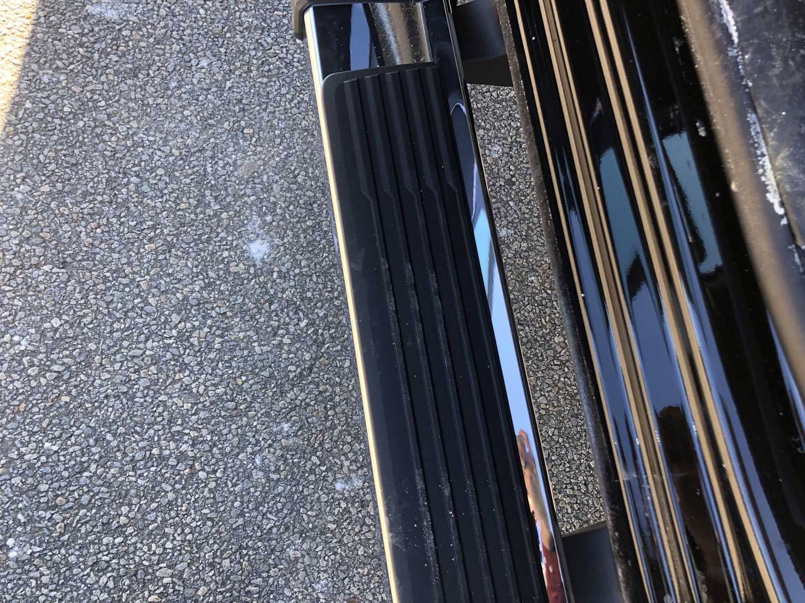 - Black textured step pads help provide secure footing