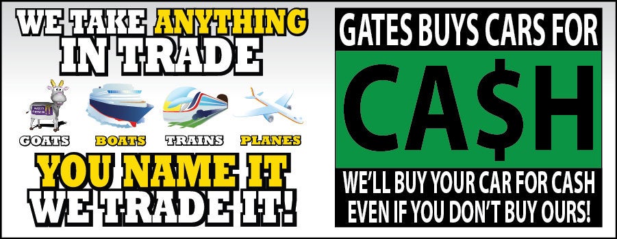Here at Gates GMC Nissan, We take anything in Trade! Boat, Goats, Planes, and Trains, You name it we will trade it. We here at Gates will buy your car even if you do not buy ours. Looking to test drive a car, but can not make it into the store? Not a problem, we will bring the car to you!! For more details on this or any vehicle at Gates GMC Nissan please go to www.gatesgmcnissan.com.