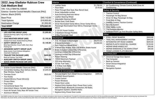 Granite Crystal Metallic Clearcoat 2022 Jeep Gladiator Rubicon