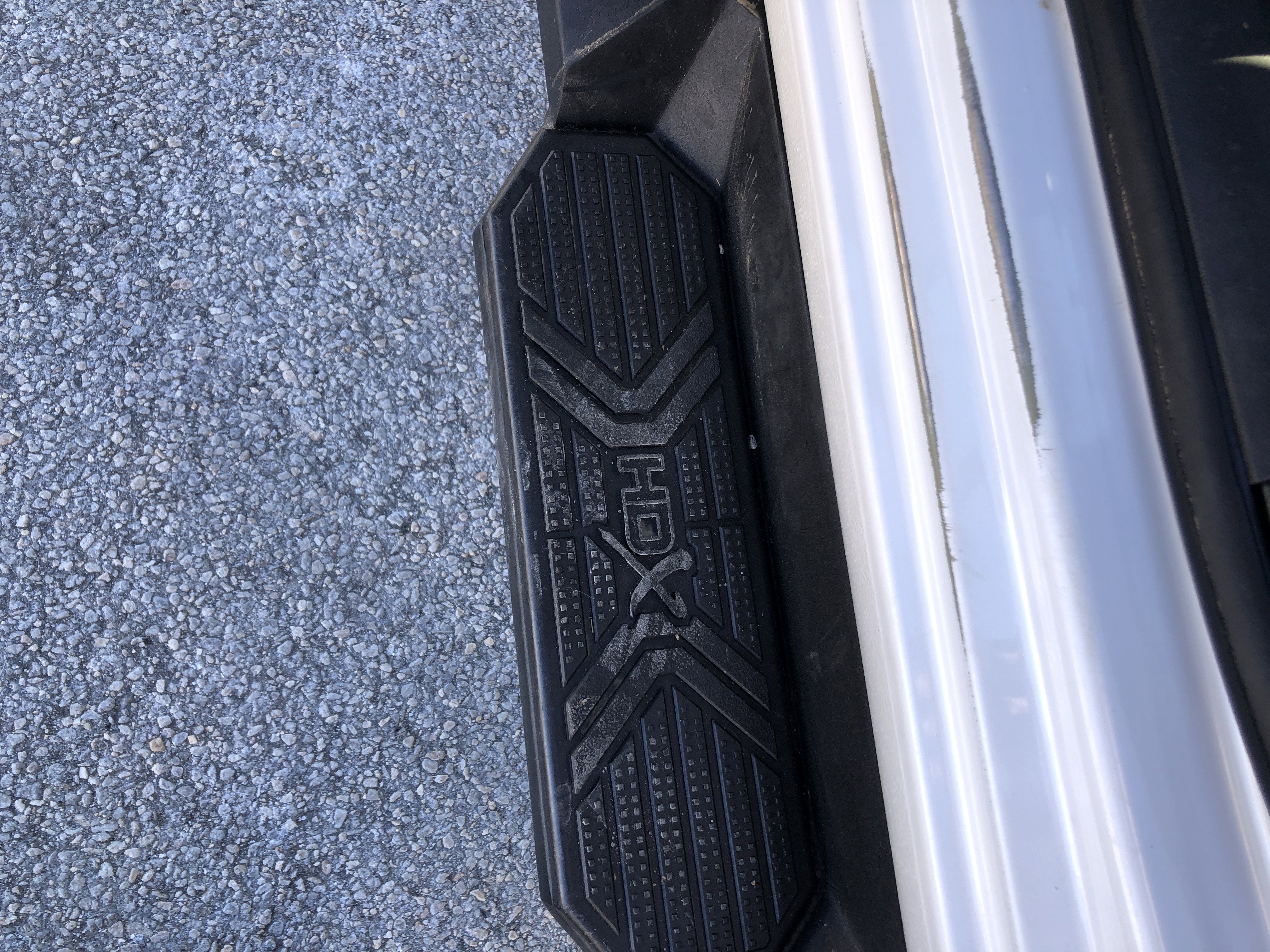 - Black textured step pads help provide secure footing