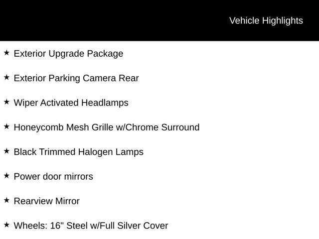 • Exterior Upgrade Package with Wiper Activated Headlamps, Honeycomb Mesh Grille with Chrome Surround, and 16" Steel Wheels with Full Silver Cover